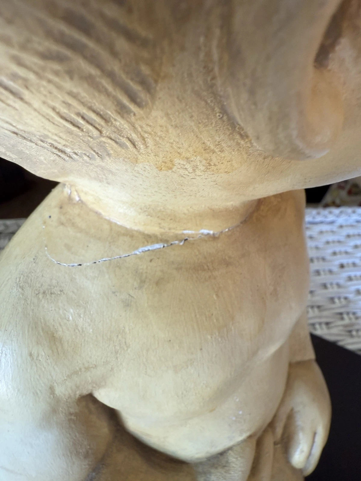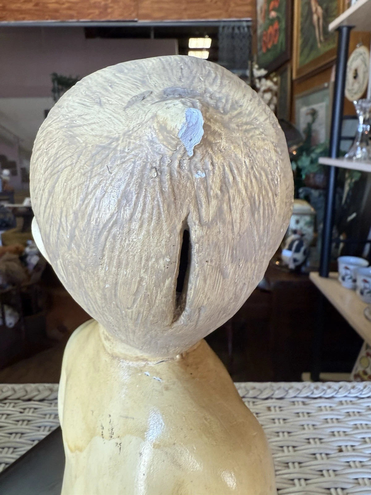 This statue shows signs of discoloration, staining, and surface wear throughout, all of which enhance its eerie aesthetic. The aged patina and imperfections are exactly what give this piece its haunting, timeworn character. Please see photos closely as this one’s not for the faint of heart.