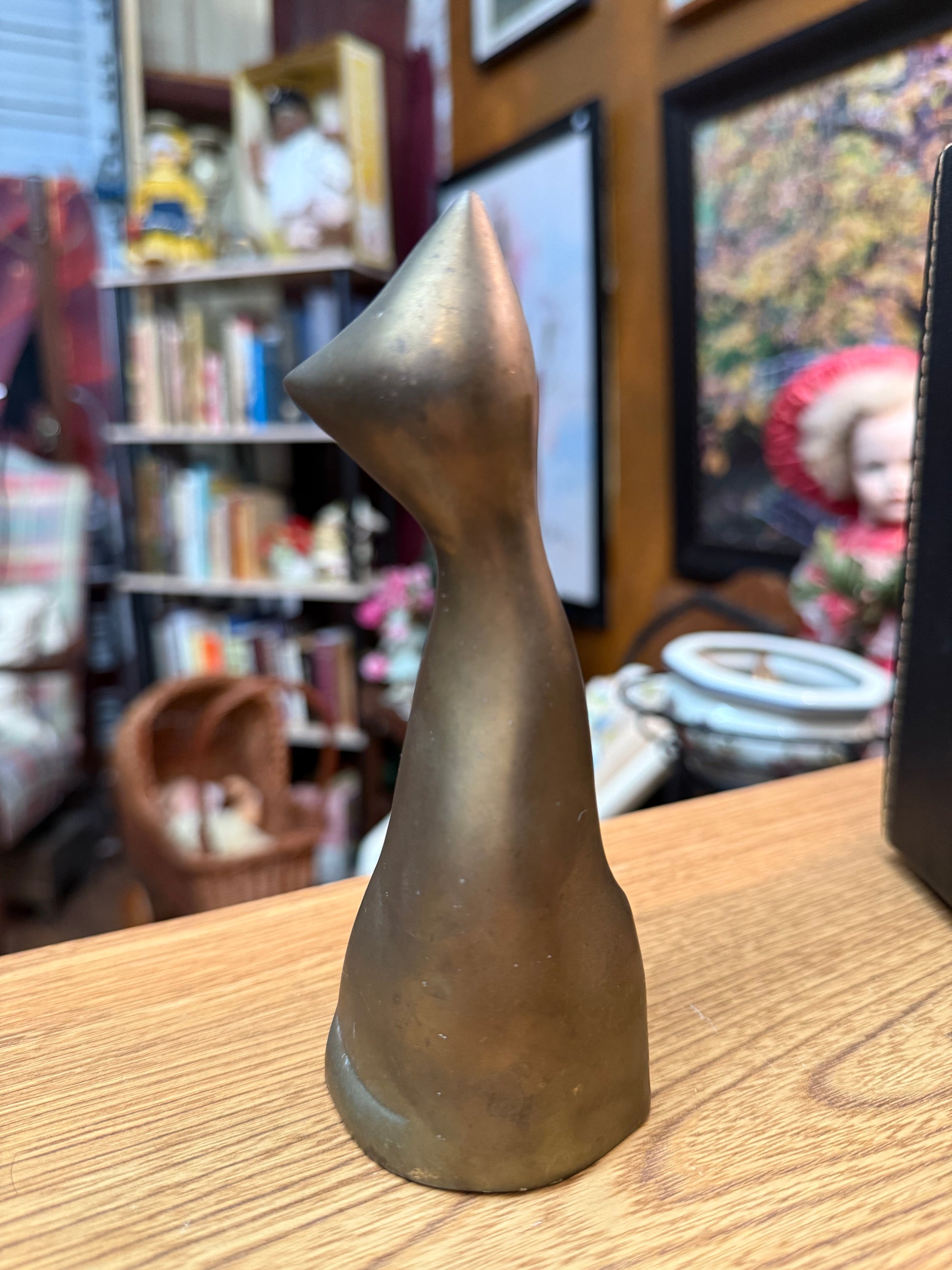 Crafted from smooth, matte brass, the piece features stylized sculptural lines reminiscent of 1950s–60s decor. This cat doesn’t meow—it purrs in Retro Modern.