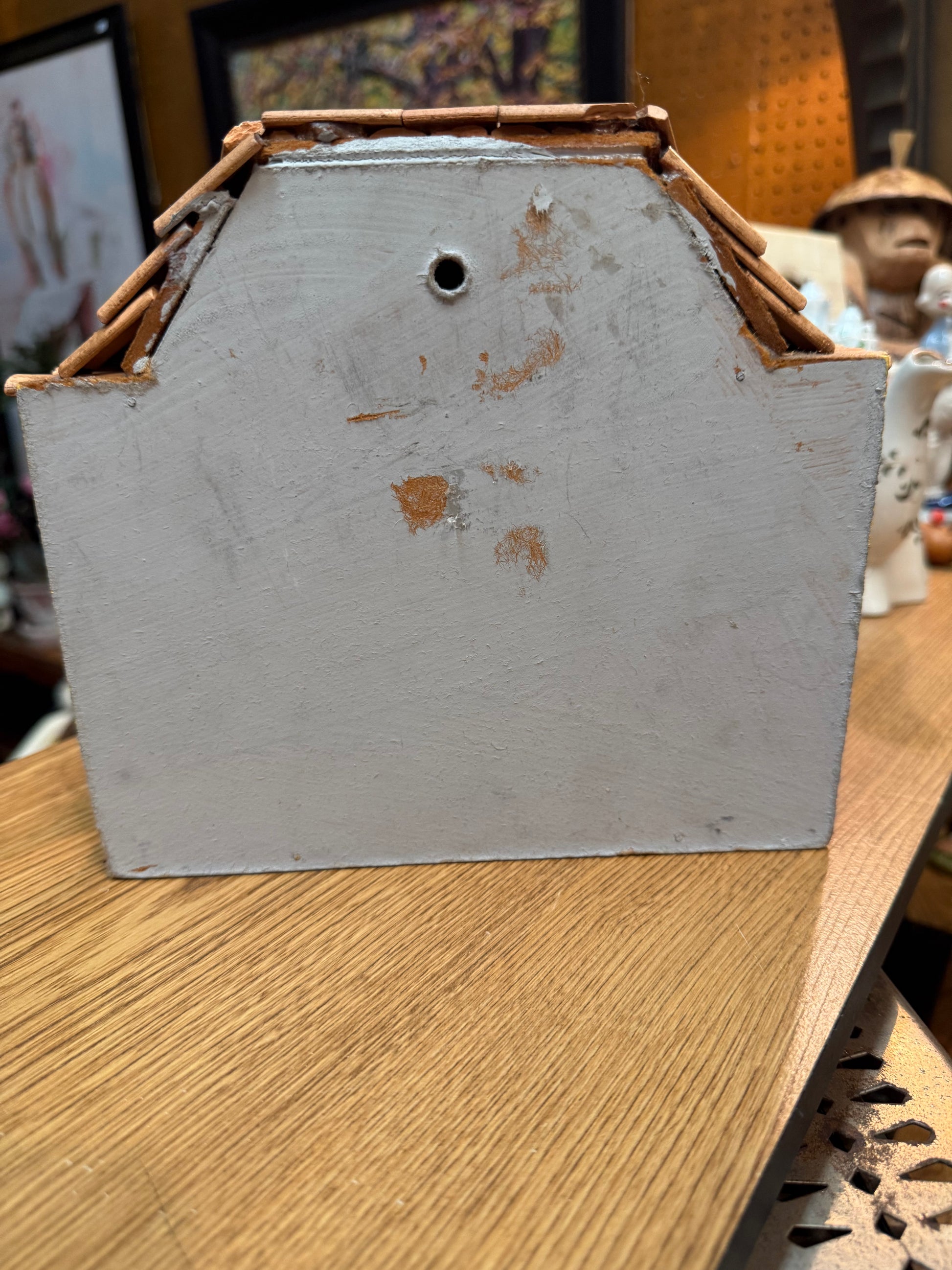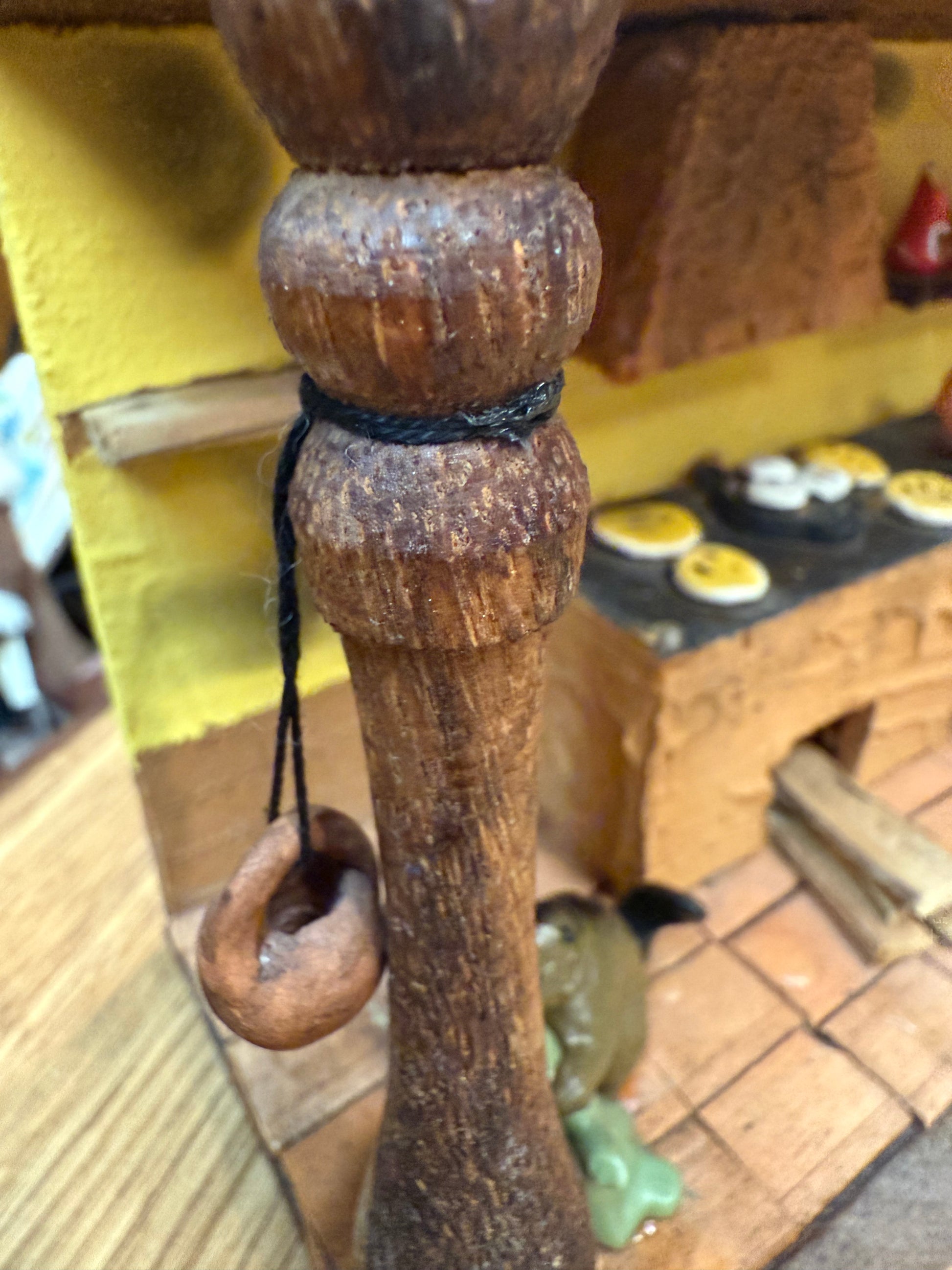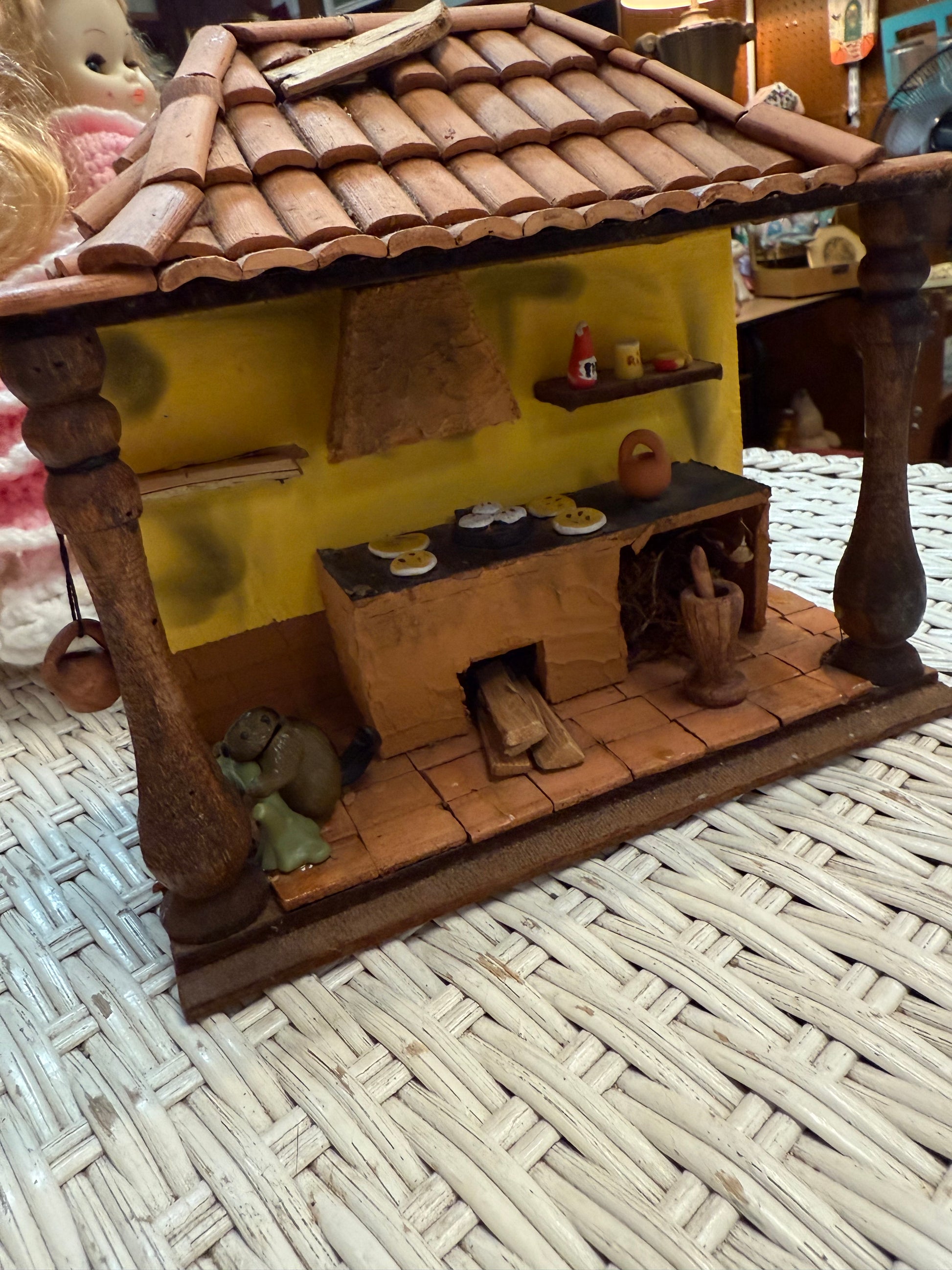• Handmade wooden diorama of a rustic kitchen/hearth