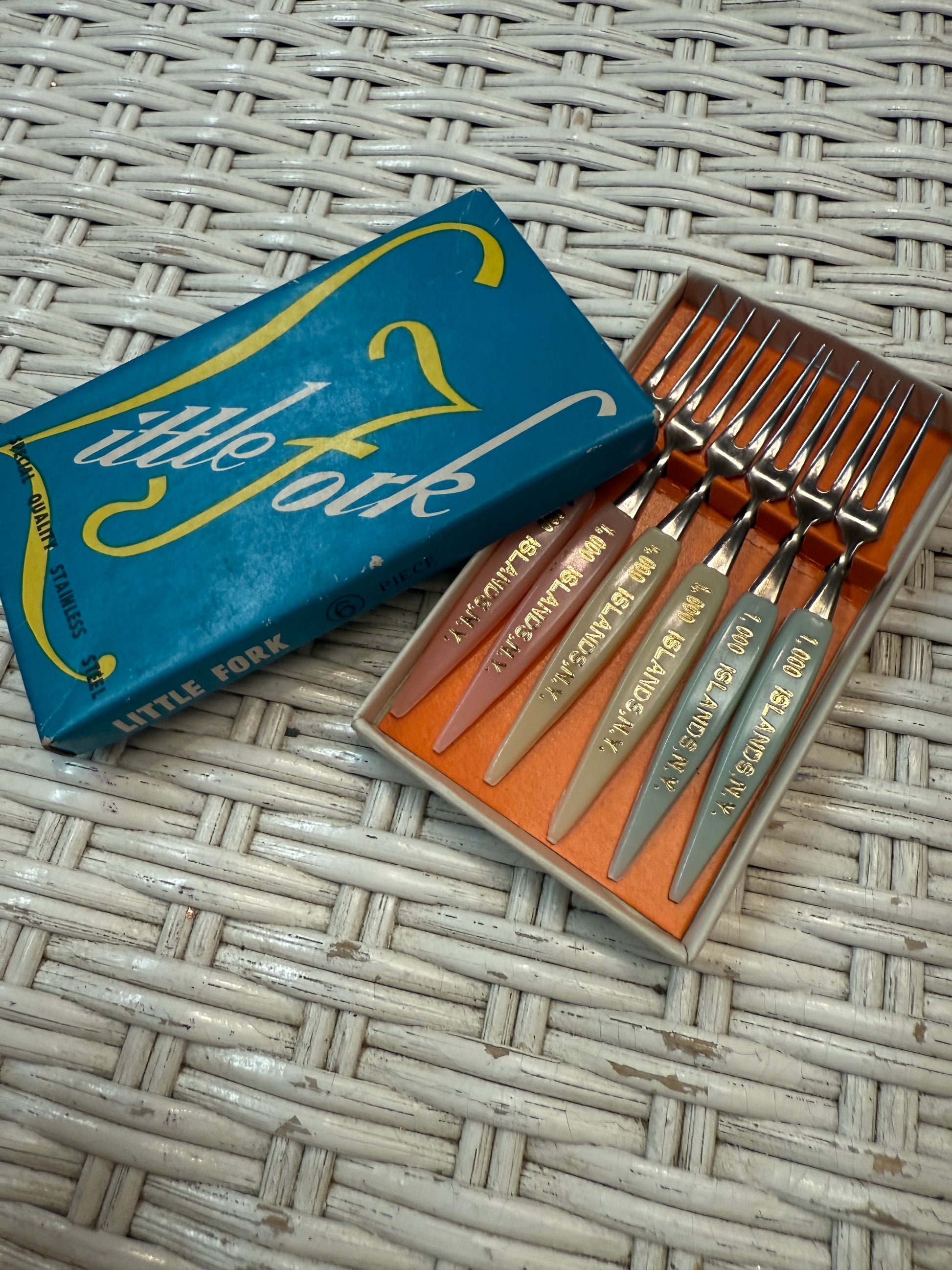 Vintage 1950s “Little Fork” Set – 1,000 Islands NY Souvenir Cocktail Forks