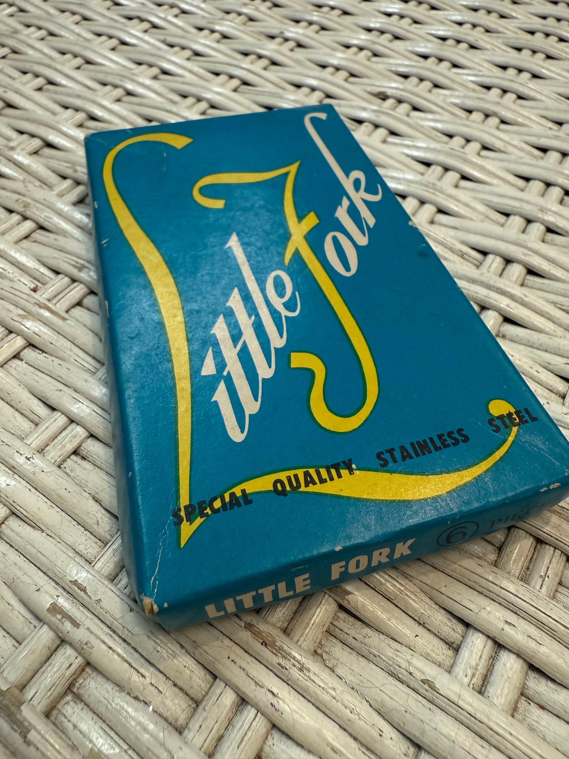 The original “Little Fork” box is still intact, with fun retro typography and bright orange lining. Perfect for displaying, using for parties, or gifting to a collector of vintage flatware or New York travel memorabilia.