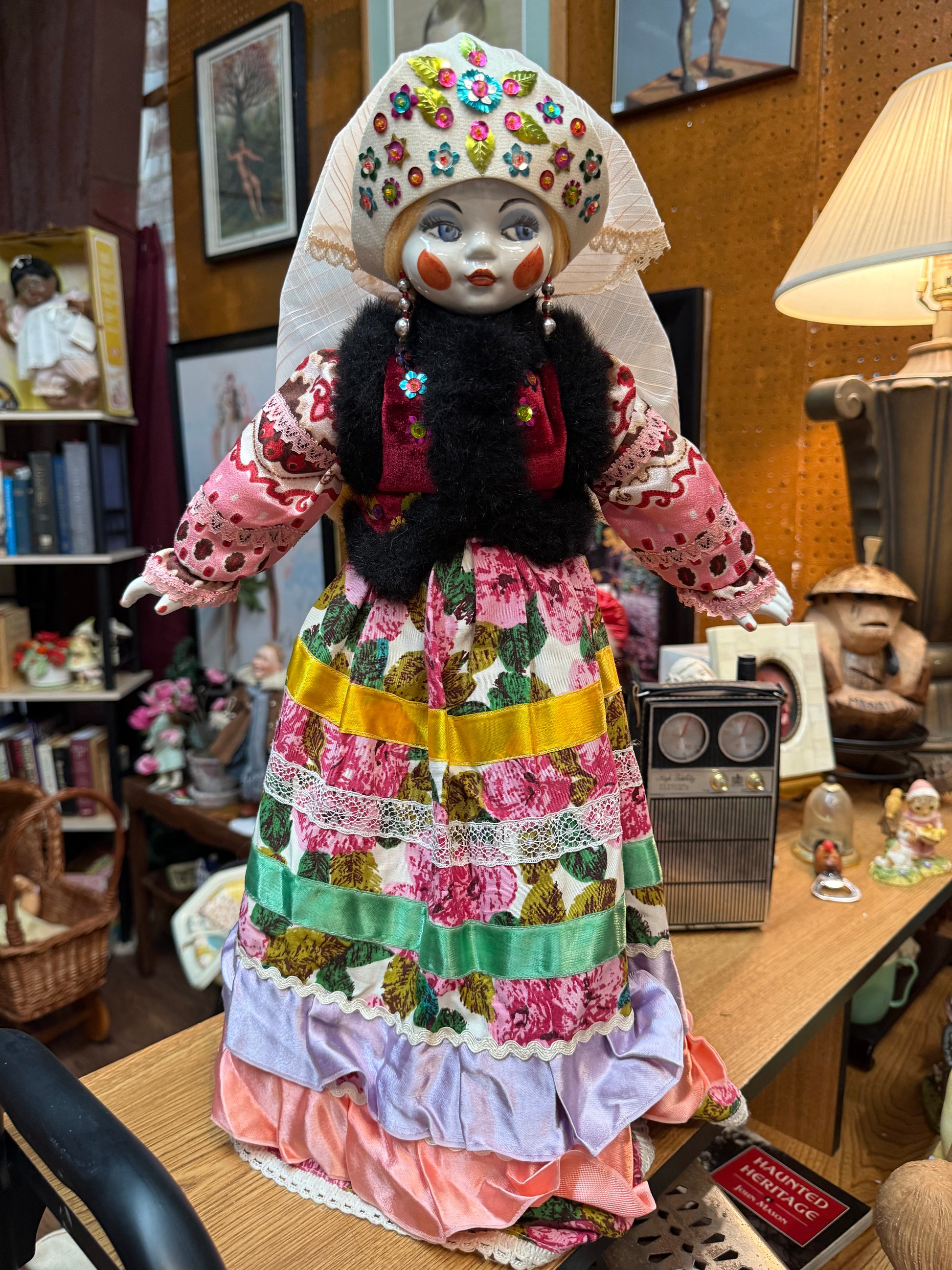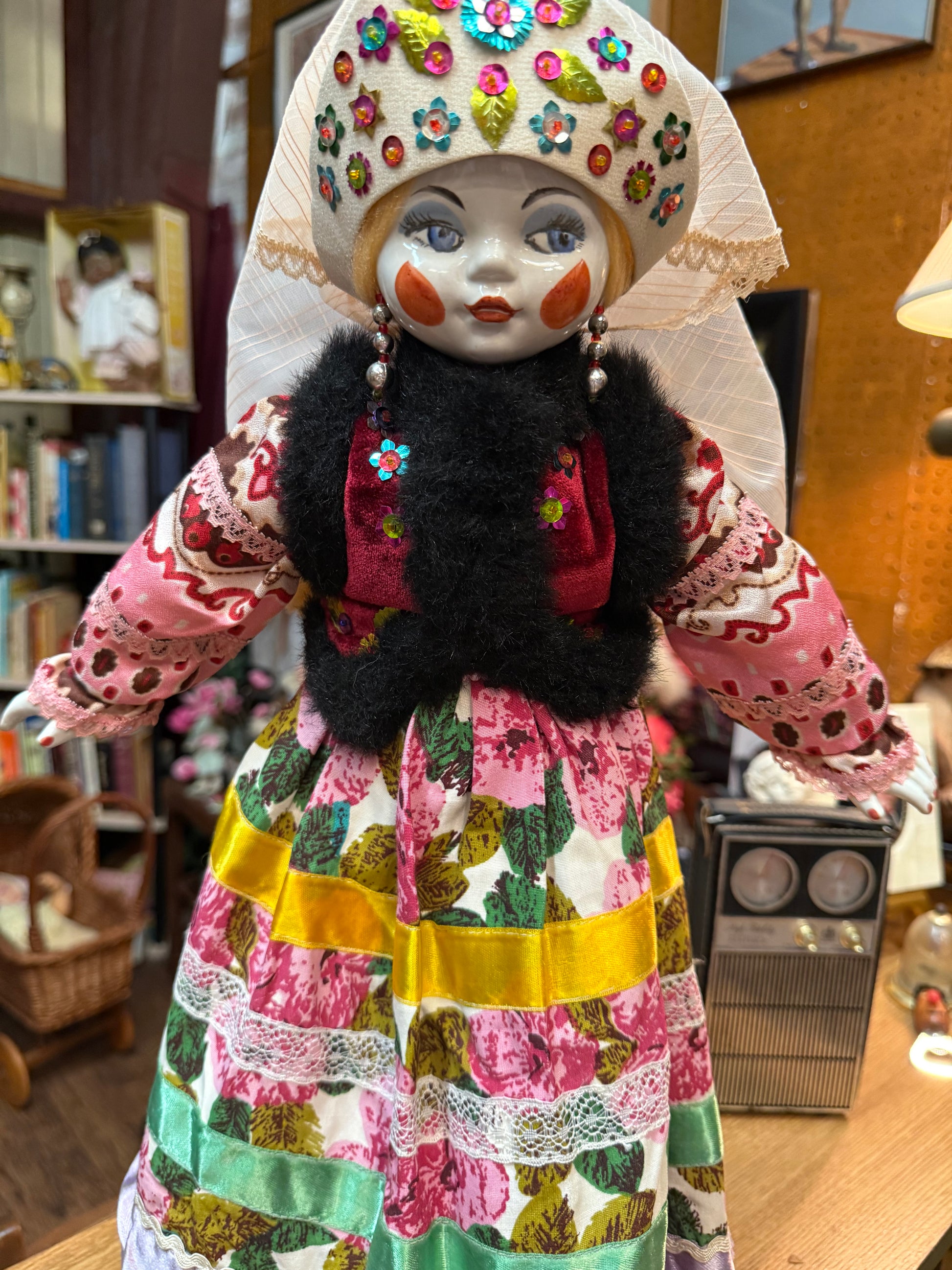 Vintage Porcelain Folk Doll in Headdress – Haunted Slavic Spirit Guardian