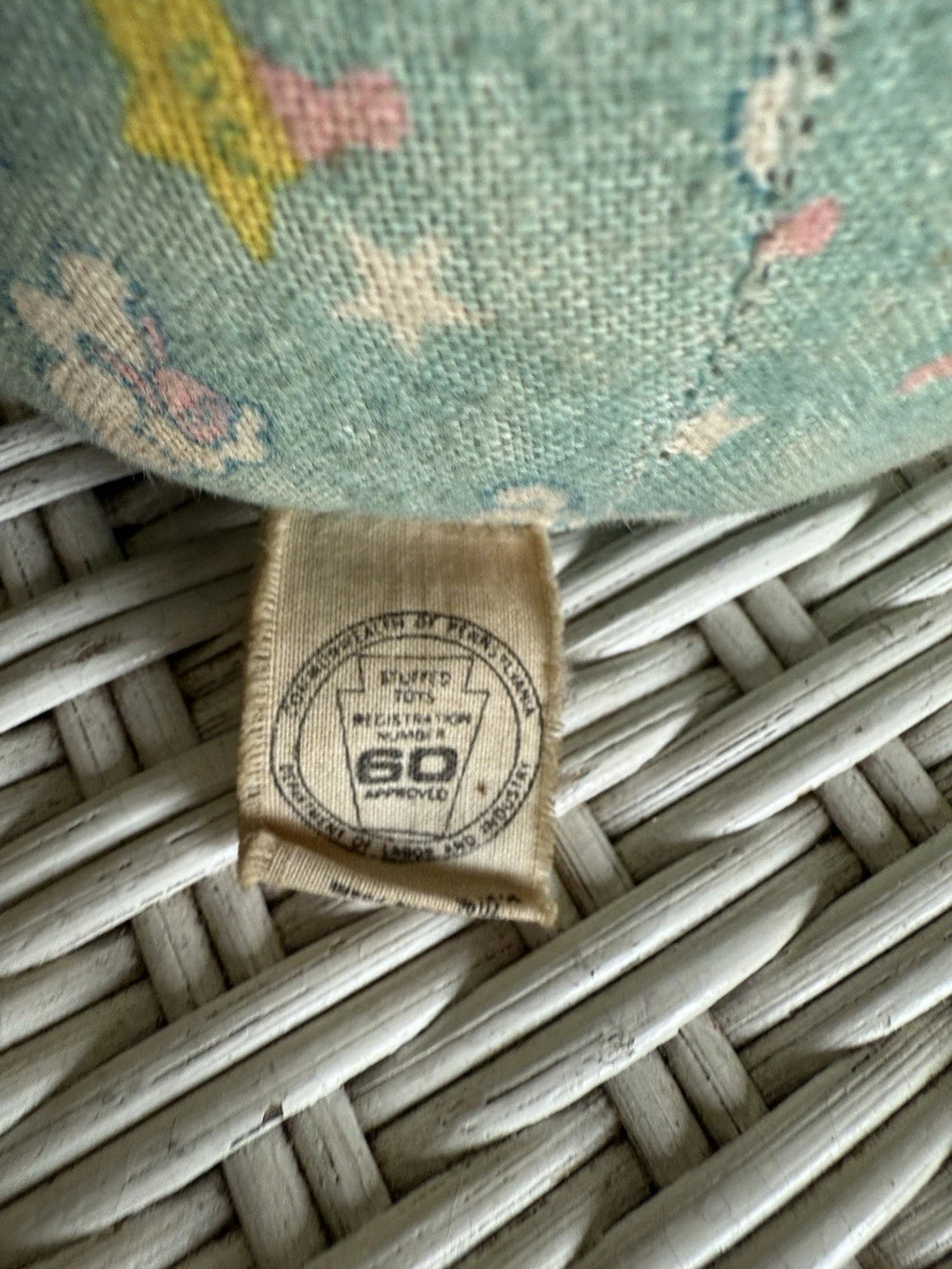 Condition: Vintage wear, significant surface marks and aging, especially to the face. Fabric shows slight staining. Hair is untamed. Original electronics not tested or no longer functioning.